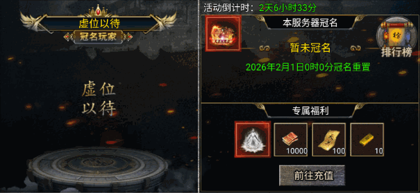 活动期间累充达到1000元可领取专属福利,累充达到1888元获得争夺冠名权资格,活动结束后充值排名第1的玩家获得冠名权。