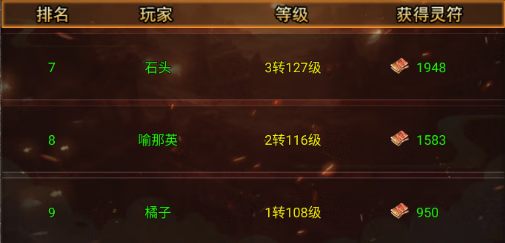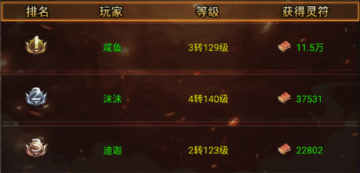 《龙战八荒》打金排行:根据玩家从拍卖行灵符拍卖中获取灵符数量进行由高到低的排名