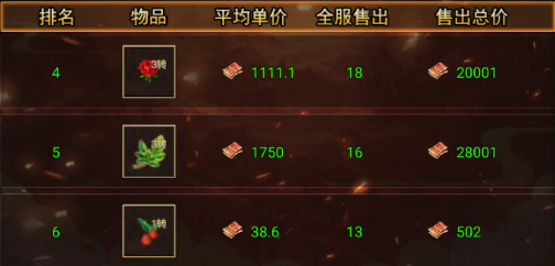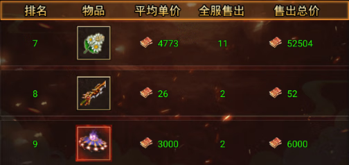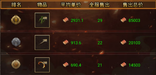《龙战八荒》热卖商品:根据商品在拍卖行灵符拍卖中售出的数量进行由高到低的排名 《龙战八荒》打金排行:根据玩家从拍卖行灵符拍卖中获取灵符数量进行由高到低的排名